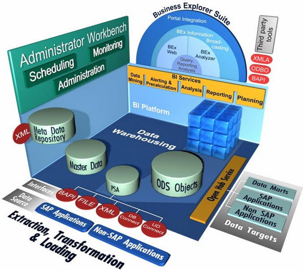 数据仓库(Bussiness Information Warehouse,BW)指在企业管理和决策中面向主题的、集成的、与时间相关的、不可修改的数据集合。与其他数据库应用不同的是,数据仓库更像一种过程,对分布在企业内部各处的业务数据的整合、加工和分析的过程。它是SAP系统中的一个标准模块,在SAP系统中具有极其重要的地位。试想,如果没有合理的数据管理策略和存储策略,随着时间的推移,想要把被存入系统的无数数据元素抽出是相当困难的。而BW培训课程的最终目的就是让学员懂得如何将各种数据元素整合、分类,并基于商业逻辑与用户需求产生各种数据分析报表,帮助用户轻而易举地得到所需数据信息。