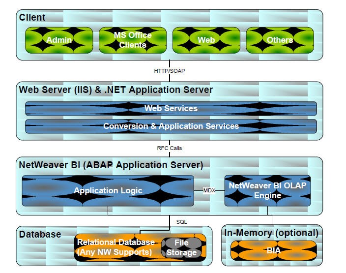 BPC是目前SAP在financial application领域主推的产品,由于从原有产品线发展而来,产品本身有两个版本,分别是基于MS OLAP平台和Netweaver OLAP平台。本文介绍的系统架构及功能只针对Netweaver平台产品。