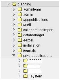 这个answer prompt文件的内容很容易理解,基本上都是与界面上面的参数设置一一对应的。每个参数作为一行,每一行用回车符作为结束,参数名称和参数值之间用一个tab符作为分隔。每一个BPC的process chain都有自己不同格式的answer prompt,要想知道如何去做answer prompt文件,简单的办法是前台运行一次数据包,然后去后台下载log文件,在log文件的基础上修改即可。进入Tcode:UJFS,打开文件夹root->webfolders->appset name->app name->privatepublications->user name->tempfiles,如下图: