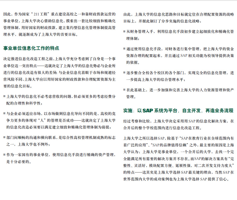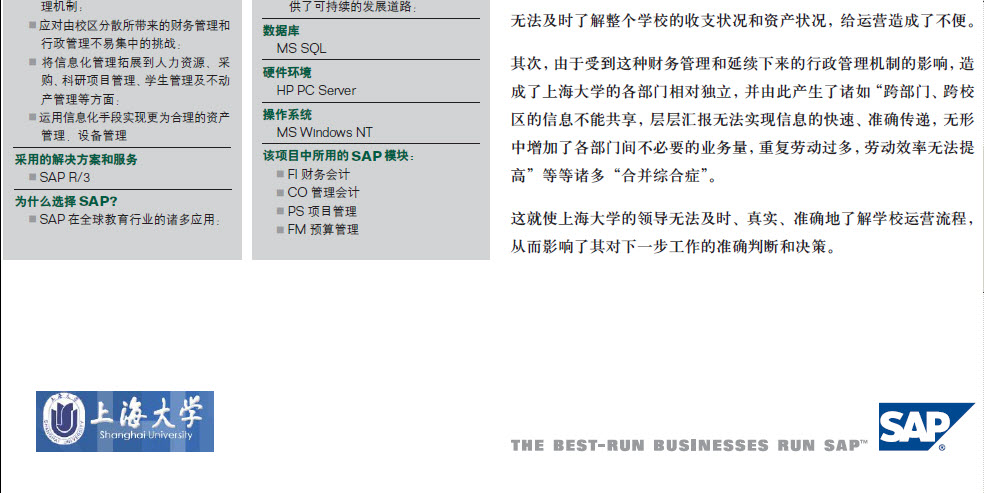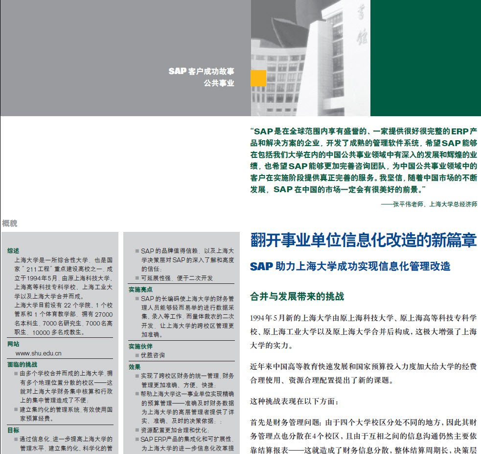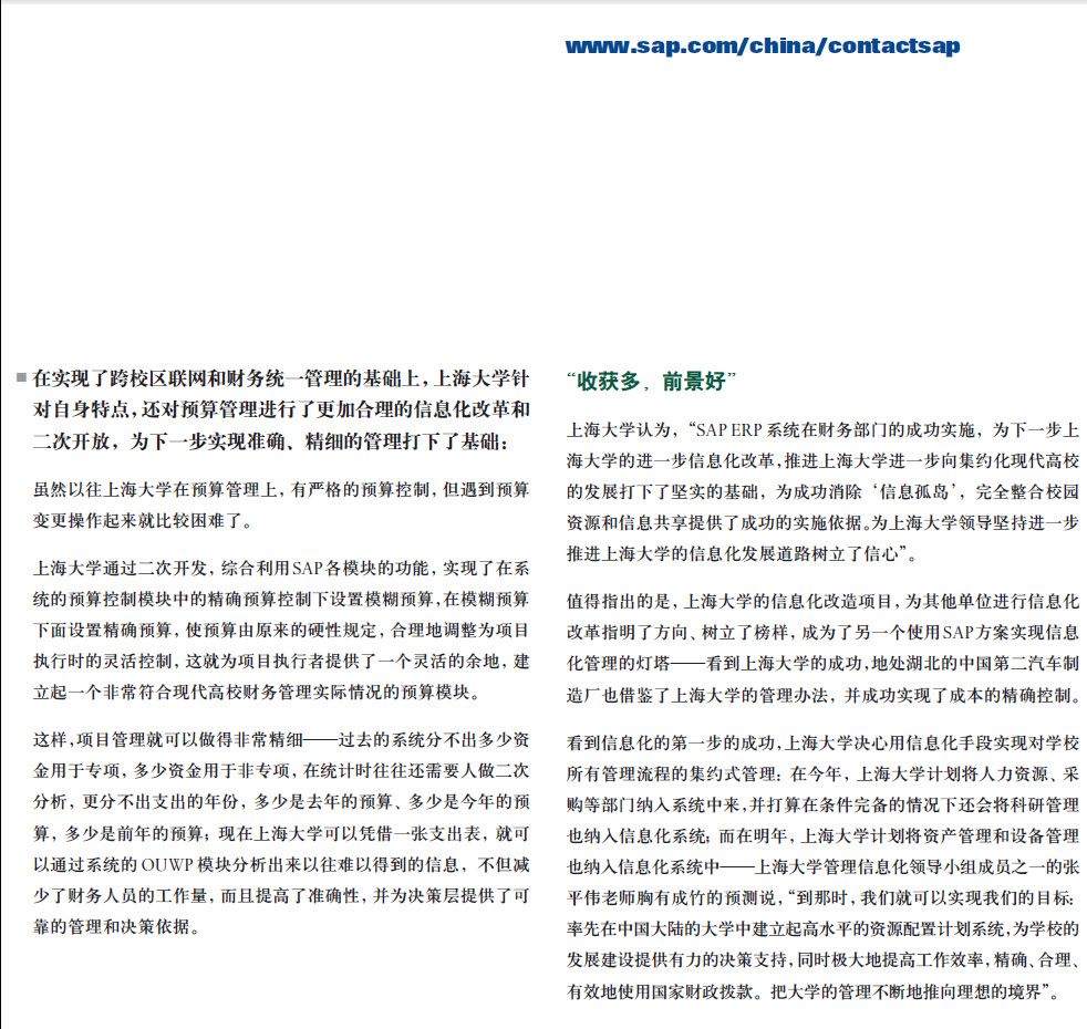 SAP中国官方杂志宣传上海大学SAP项目的成功实施